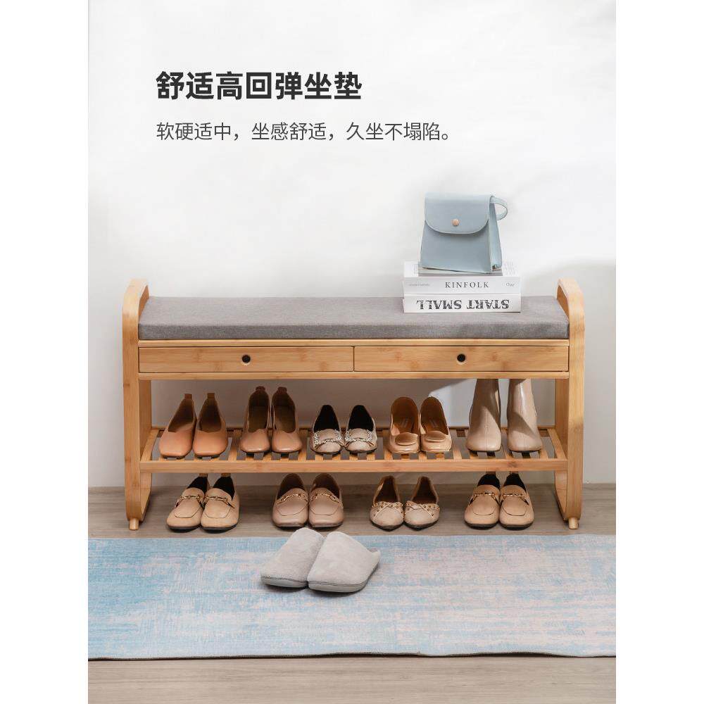 竹制斯堪的纳维亚家庭换鞋凳入口创意鞋柜换鞋凳凳多功能收纳凳可