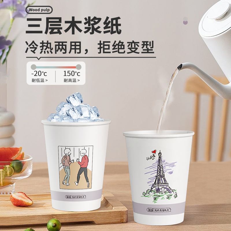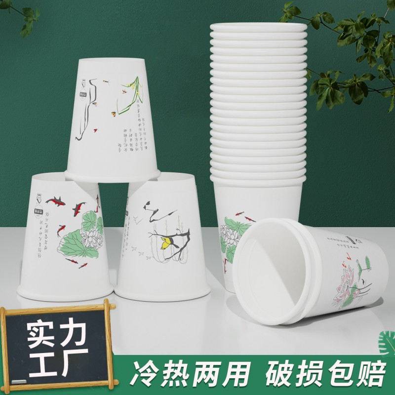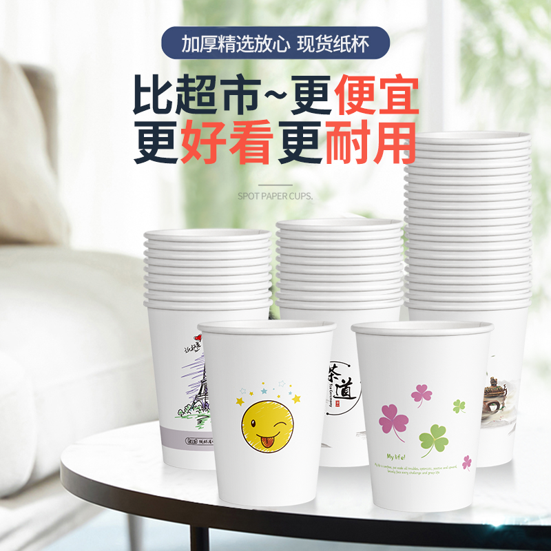 食品级一次性纸杯家用商用高颜值网红颜控加厚硬风景水杯整箱批发