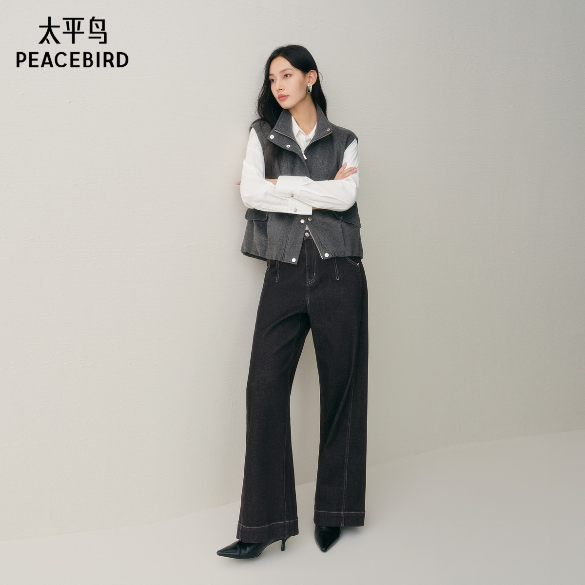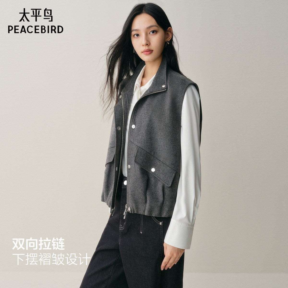 【商场同款】太平鸟甄毛系列毛呢马甲式大衣女25年新款A1AAF4148