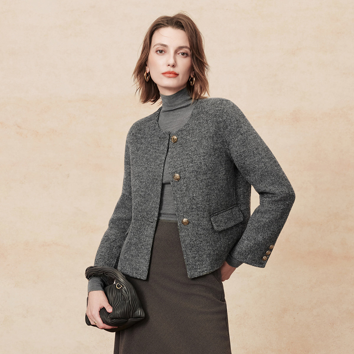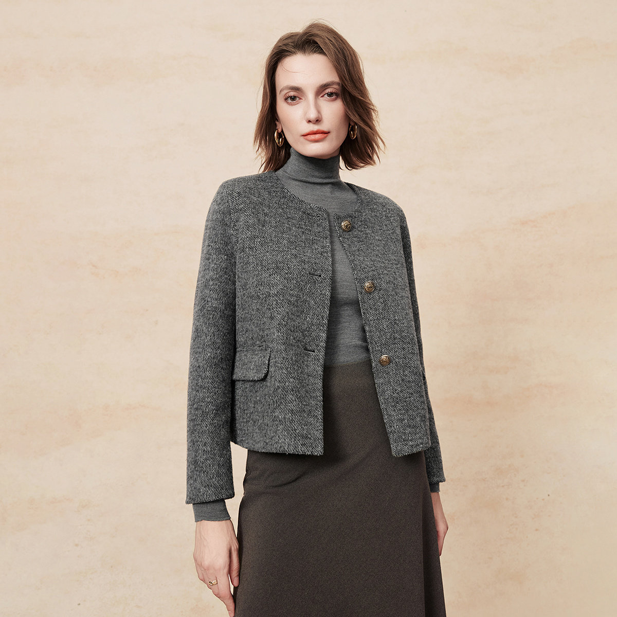 气质双面羊毛大衣女短款2025新款单排扣双面呢圆领小香风毛呢外套