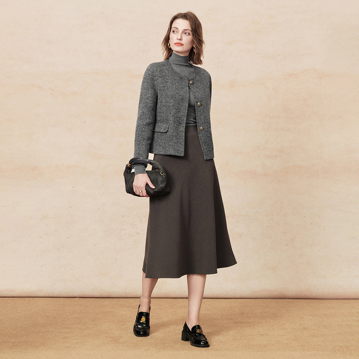 FINITY菲妮迪毛呢外套2025年冬季新款简约小香风百搭双面呢大衣女