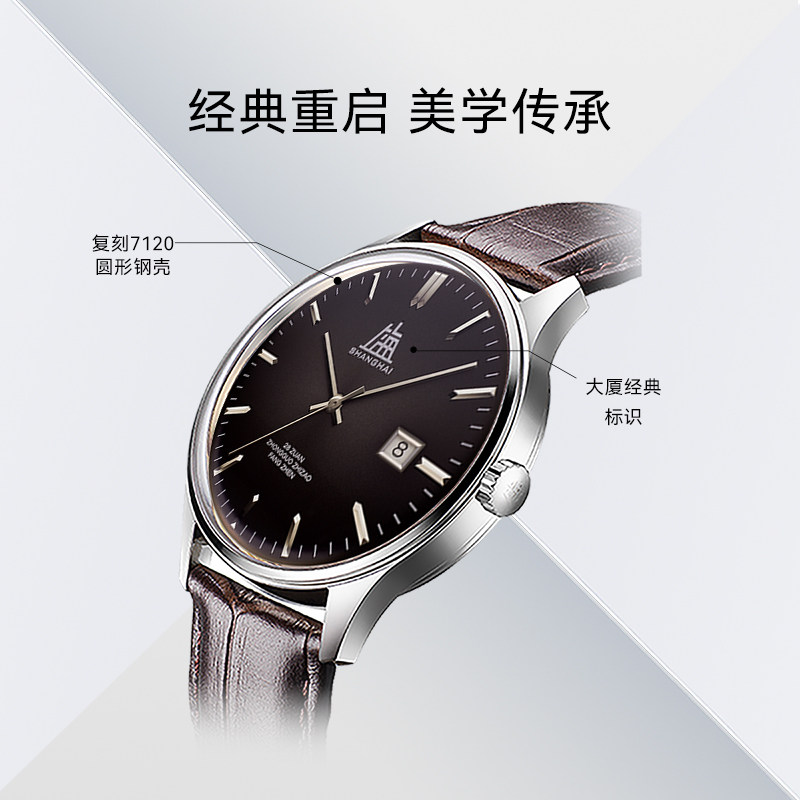 上海手表男款致敬系列传颂再述经典7120复刻机械表