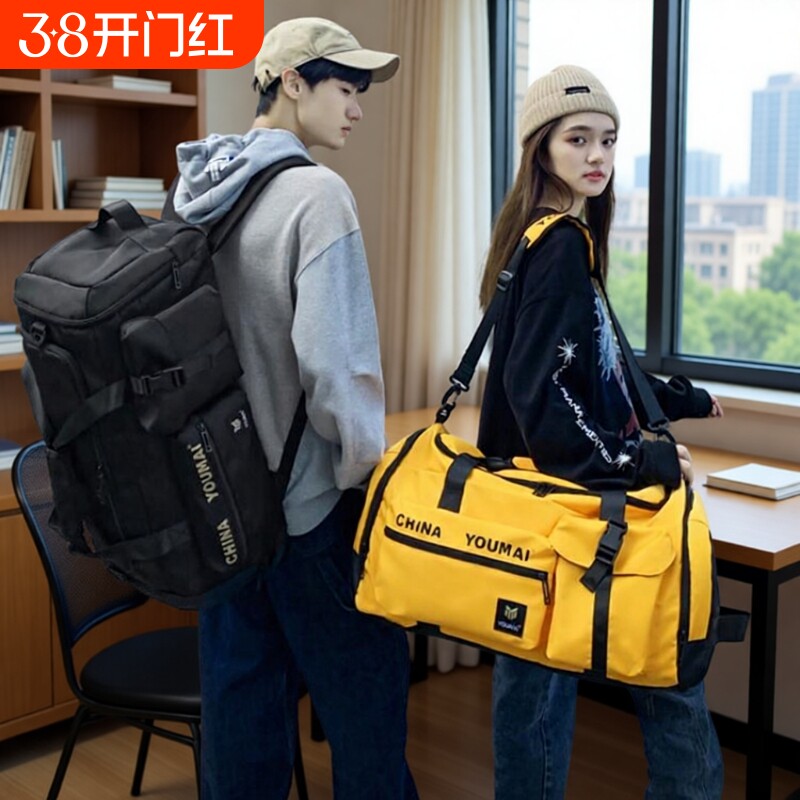 米熙大容量旅行包女轻便手提斜挎运动健身包短途旅游收纳行李袋男