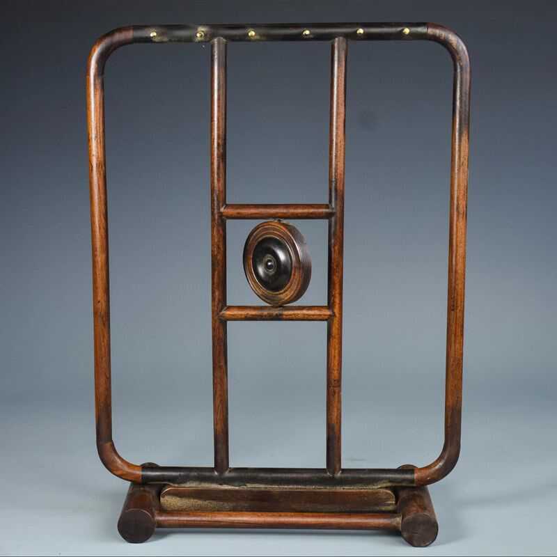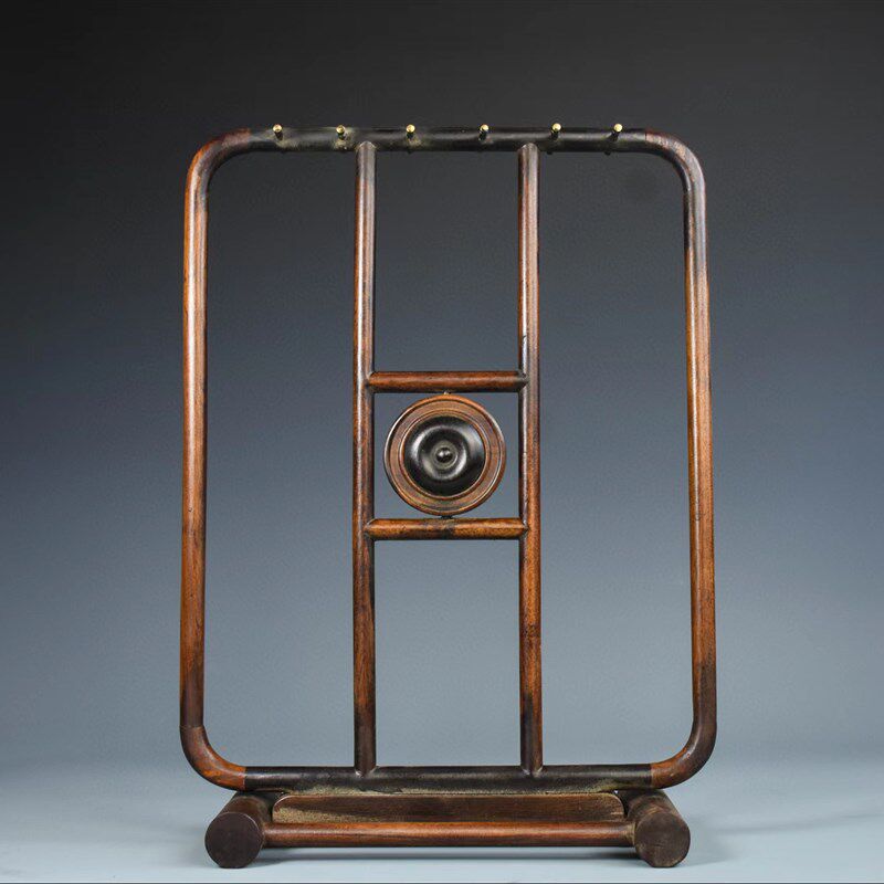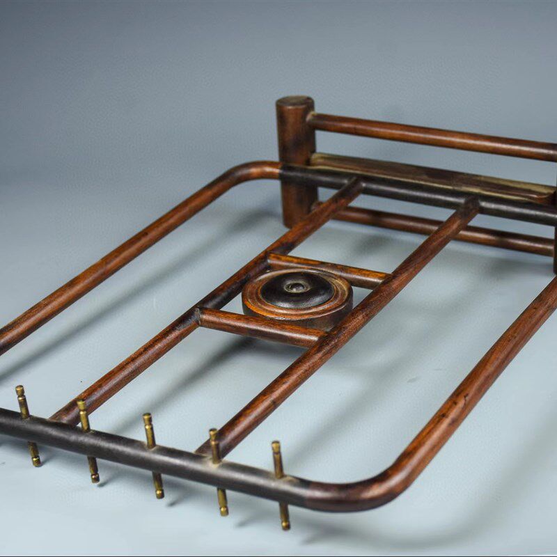古玩古董老货红木实木花梨木镶z铜毛笔挂搁酸枝木笔架笔搁文房用