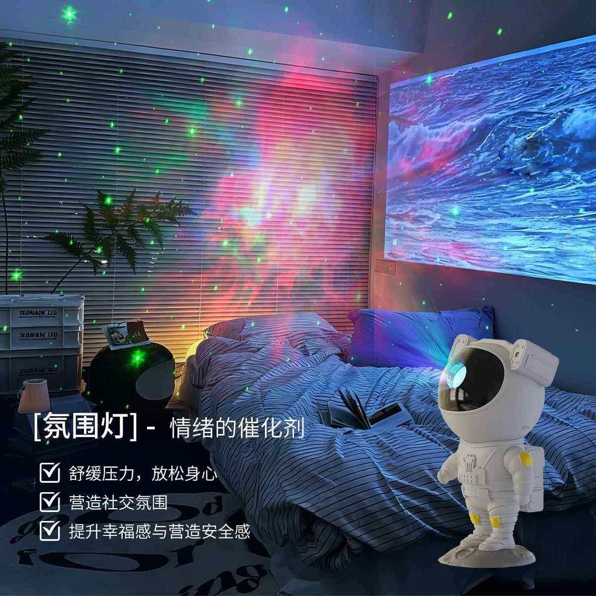 宇航员动态星空投影灯卧室氛围灯星空顶床头创意摆件小夜灯星空灯