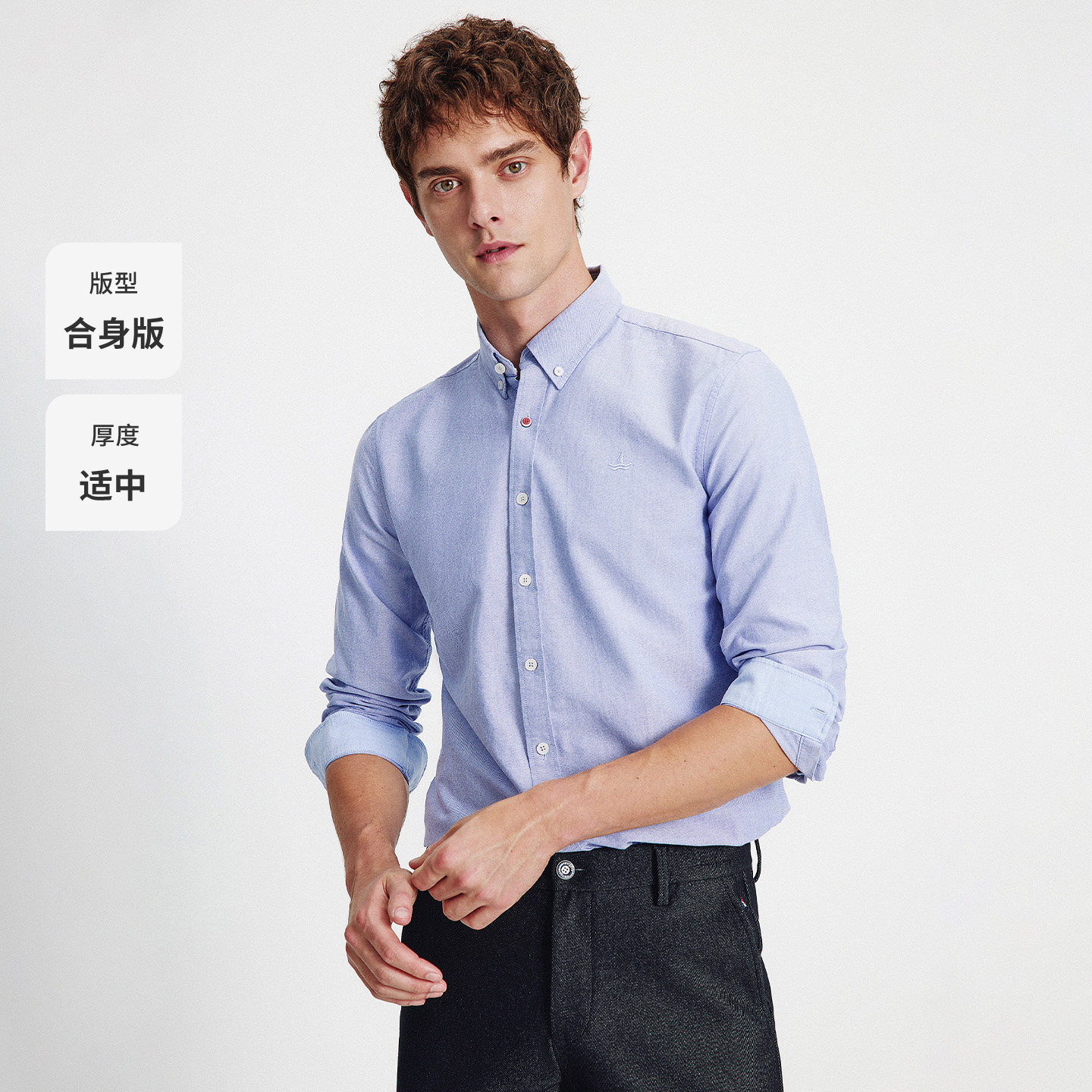 [牛津纺]Navigare意大利小帆船春季蓝色衬衫男长袖休闲纯棉衬衣