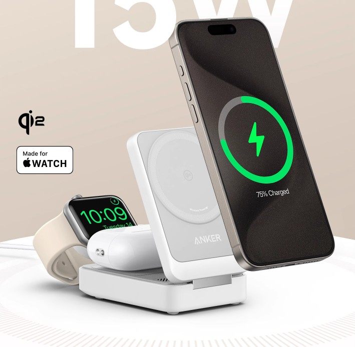 Anker安克适用苹果手机充电头手表耳机apple watch充电座MagGo磁吸三合一无线充电器OK充Qi2标准认证座充桌充