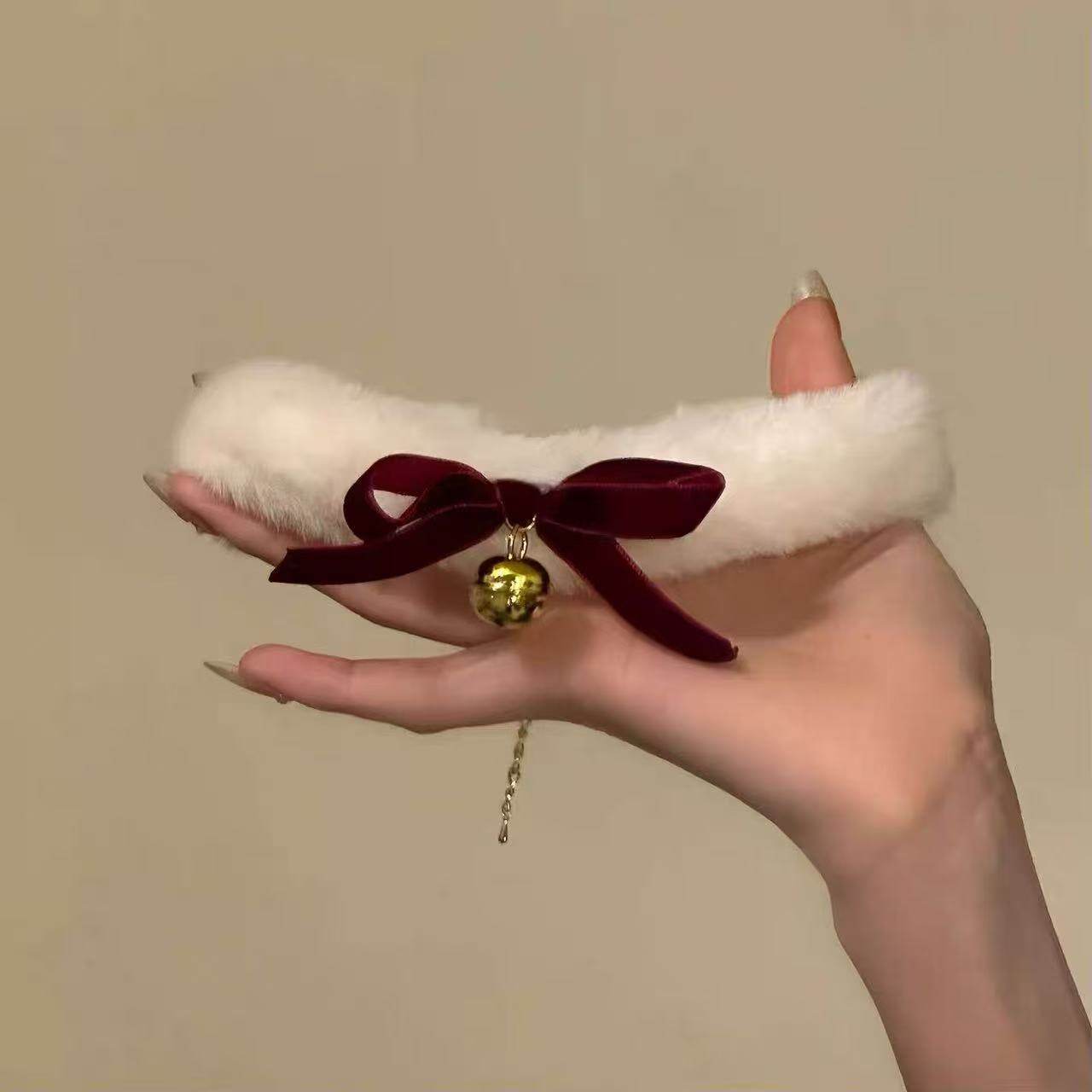 圣诞节新年酒红色choker项圈女秋冬毛绒颈链氛围感红色项链