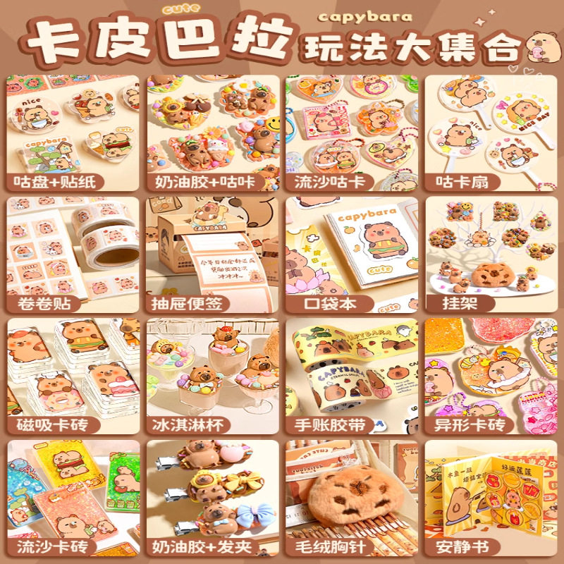 【大图释官方授权】可爱卡通卡皮巴拉奶油胶咕卡套装手帐礼盒贴创意diy装饰纸卷卷贴儿童小学生生日礼物公仔
