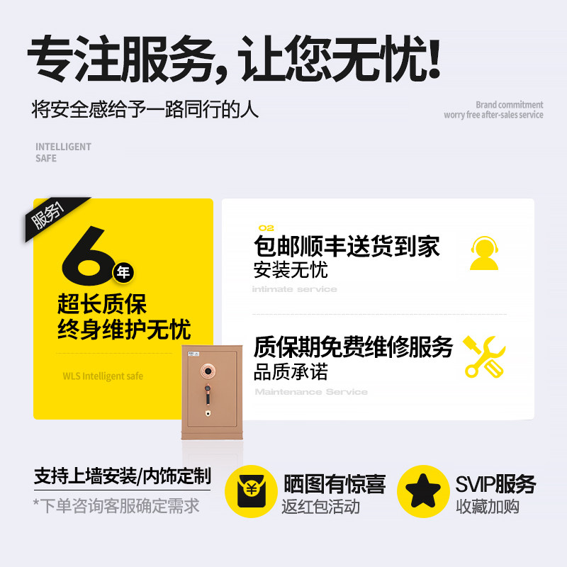威伦司WLS保险柜指纹密码机械钥匙智能WIFI互联全钢一体保险箱防盗防撬国标认证可上墙夹万