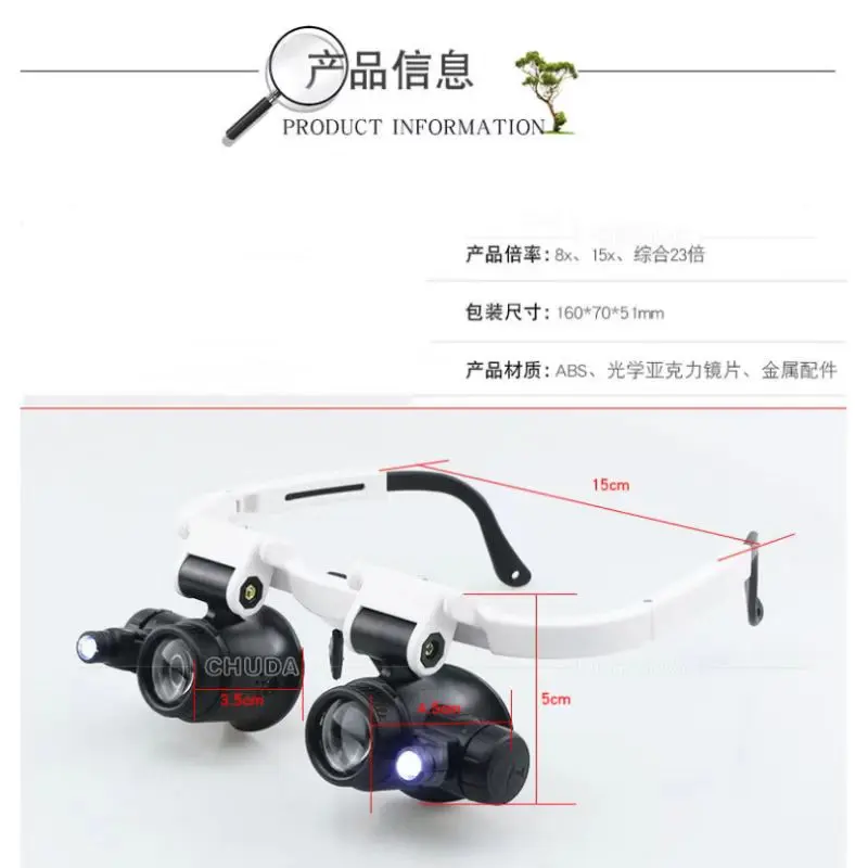 高清头戴式眼罩放大镜鉴定维修鉴定钟表电路板灯雕刻古玩目镜-T