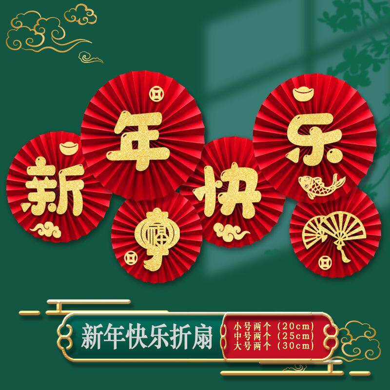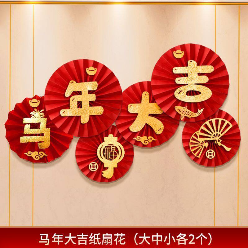 2026马年新年过年元旦春节装饰福字纸扇花场景布置店铺商场挂件