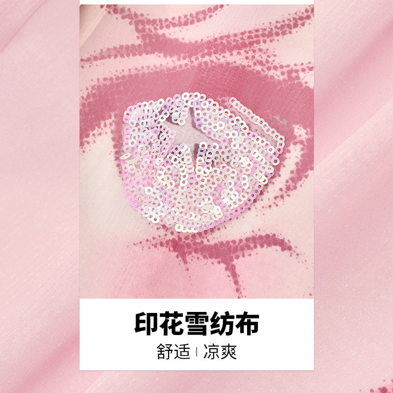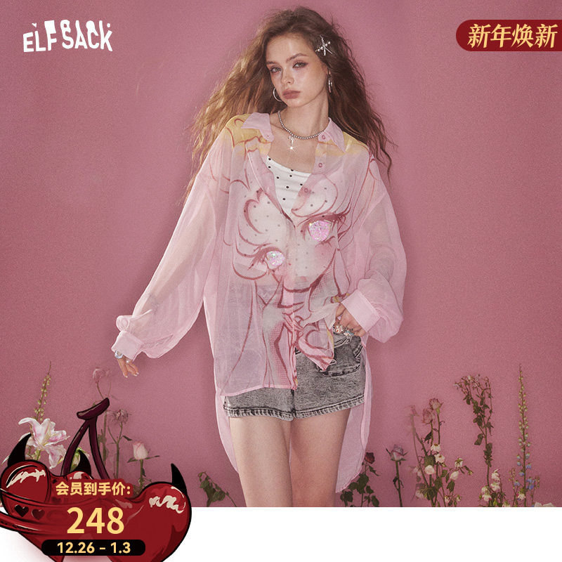 妖精的口袋原创印花粉色雪纺外套女2025年夏季新款宽松轻薄衬衫