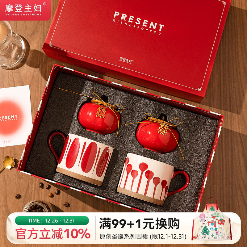 摩登主妇马克杯情侣对杯水杯套装红色杯子订婚结婚新婚礼物送新娘