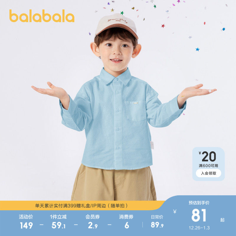 巴拉巴拉童装男童长袖衬衫纯棉儿童上衣2025新春秋学院风时尚百搭