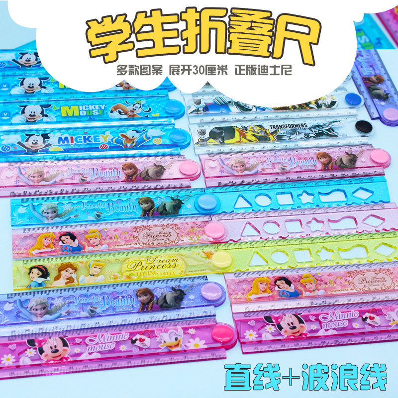 变形金刚小学生男30厘米大号折叠尺儿童冰雪奇缘直尺波浪线几何图