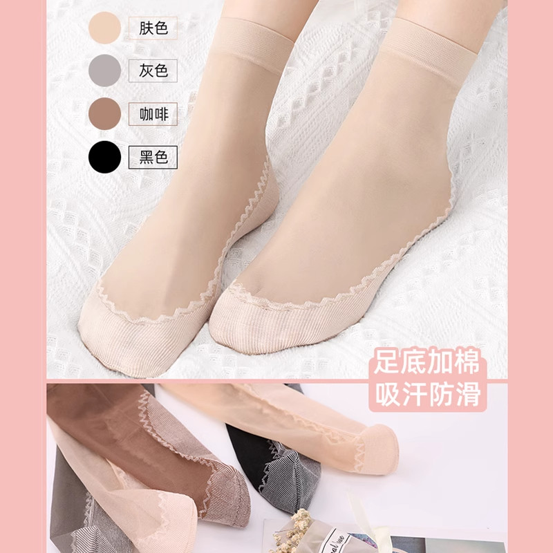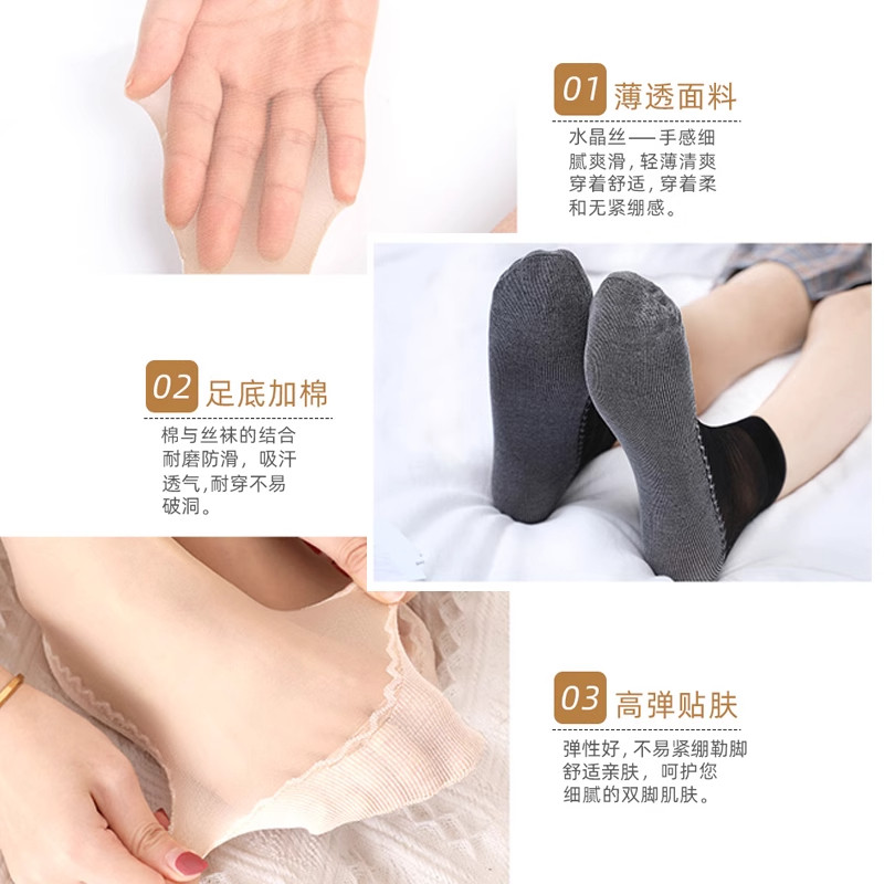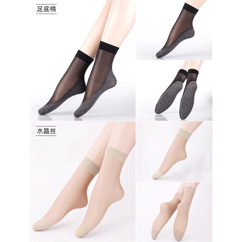 丝袜女春夏薄款纯棉底肉色防臭中筒袜子女耐磨防勾丝防滑水晶短袜
