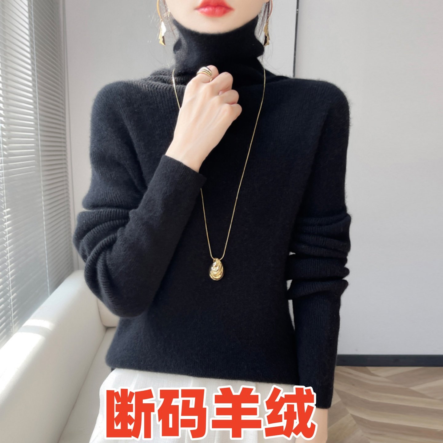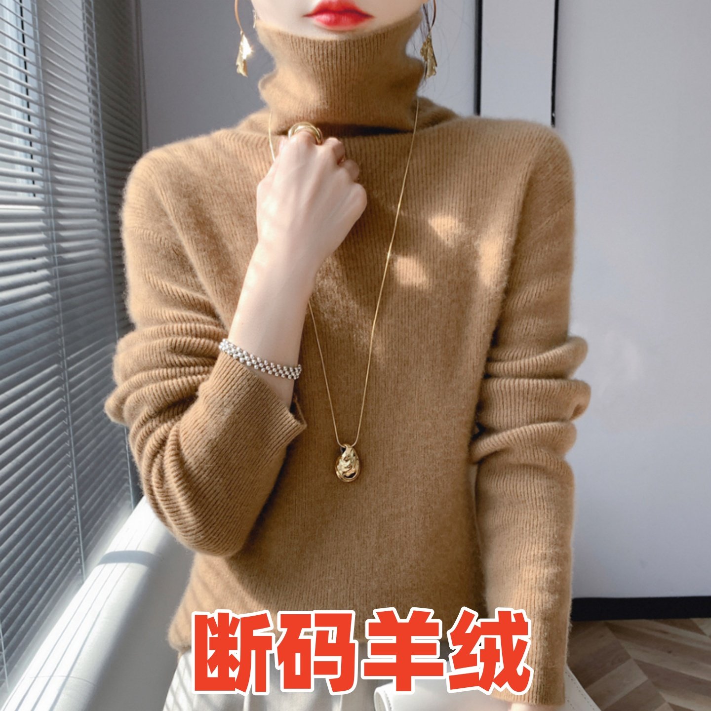 秋冬新款100羊毛衫女堆堆领修身毛衣针织加厚羊绒高领纯色打底衫