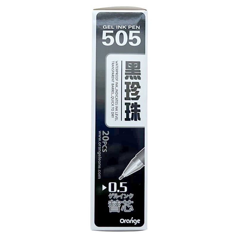 12支橘林中性笔黑珍珠505黑色笔0.5mm水笔签字笔半针管中性笔笔芯