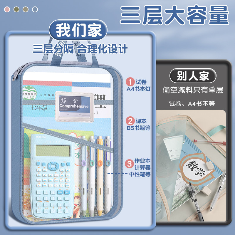 晨光L型科目分类袋小学生学科收纳袋文件袋书本作业试卷分科整理学习用品资料课本语文数学英文具装书手提书