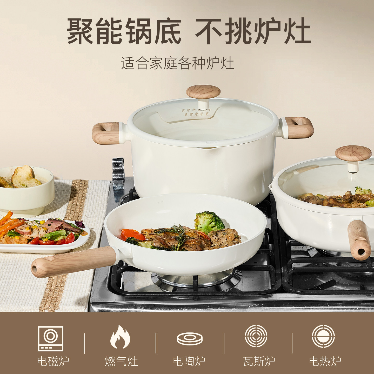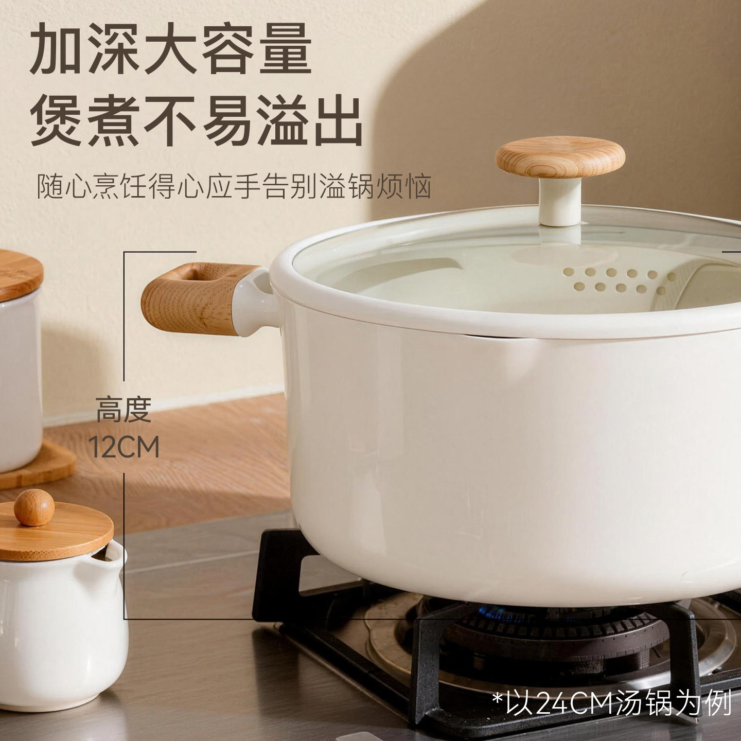 卡罗特蒸锅家用钛陶瓷不粘锅大容量汤锅双耳煮炖锅电磁炉燃气专用