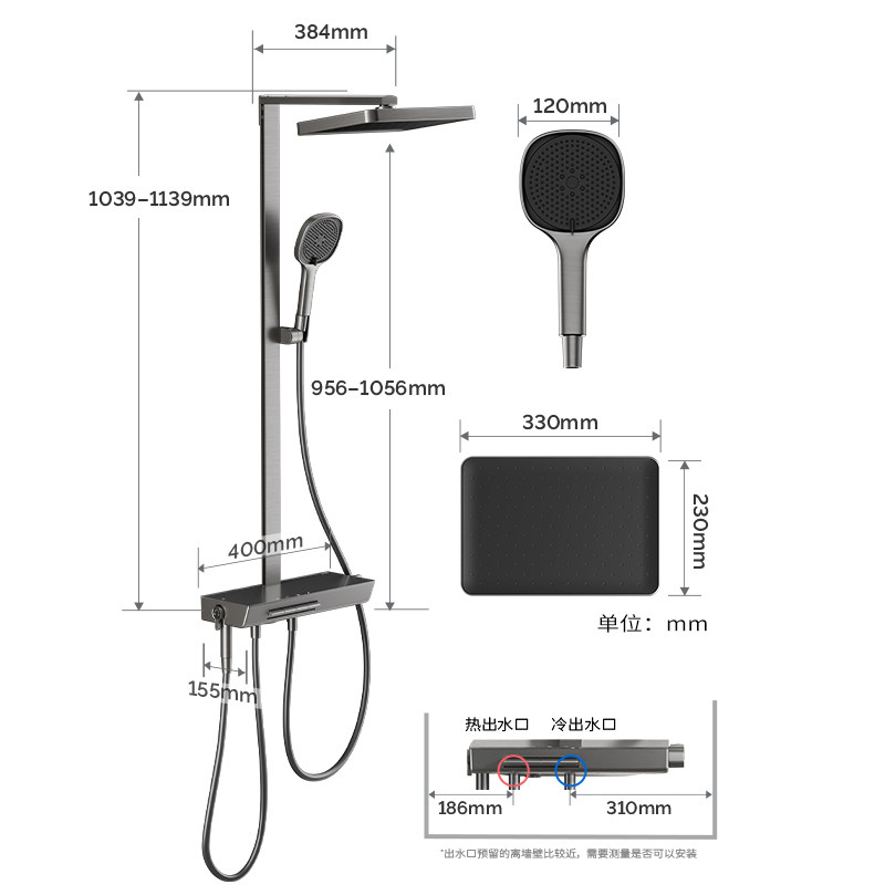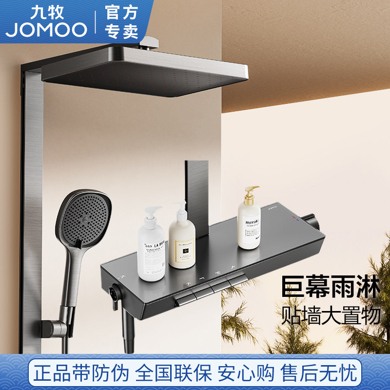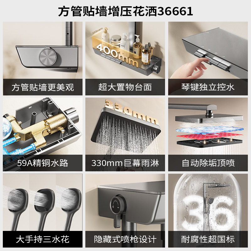 九牧卫浴方管淋浴器琴键家用花洒套装浴室沐浴增压镜雨莲蓬顶喷头