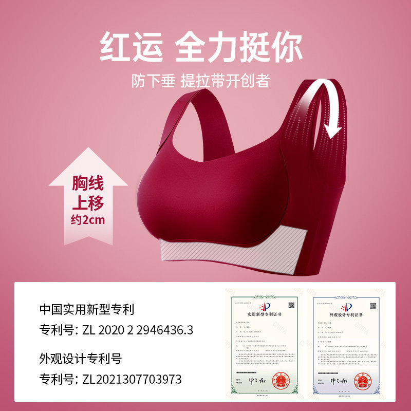润微提拉女王内衣女大胸显小红色大码调整形聚拢收副乳防下垂文胸