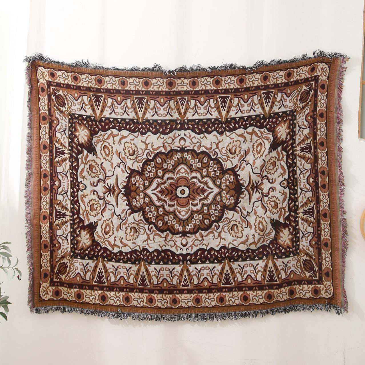 中式几何沙发盖布四季通用毯子流苏线毯提花毛毯