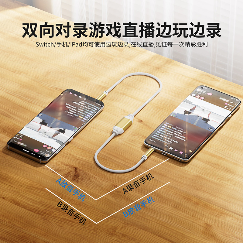 手机音频双向对录线互录器对路线器转播器双头3.5mm通话转换对录器JBU-Q6