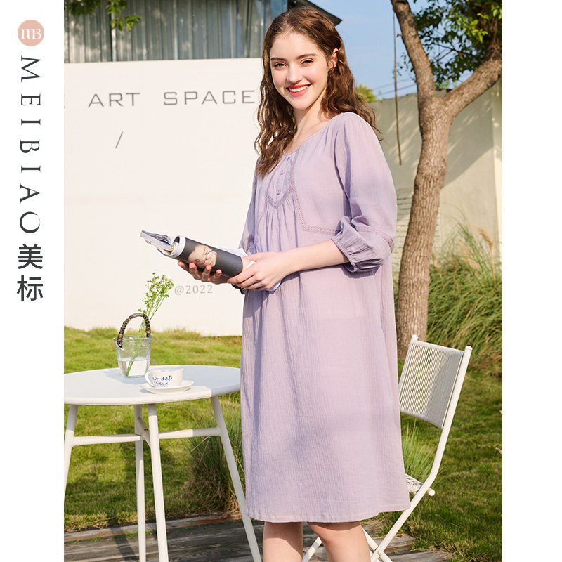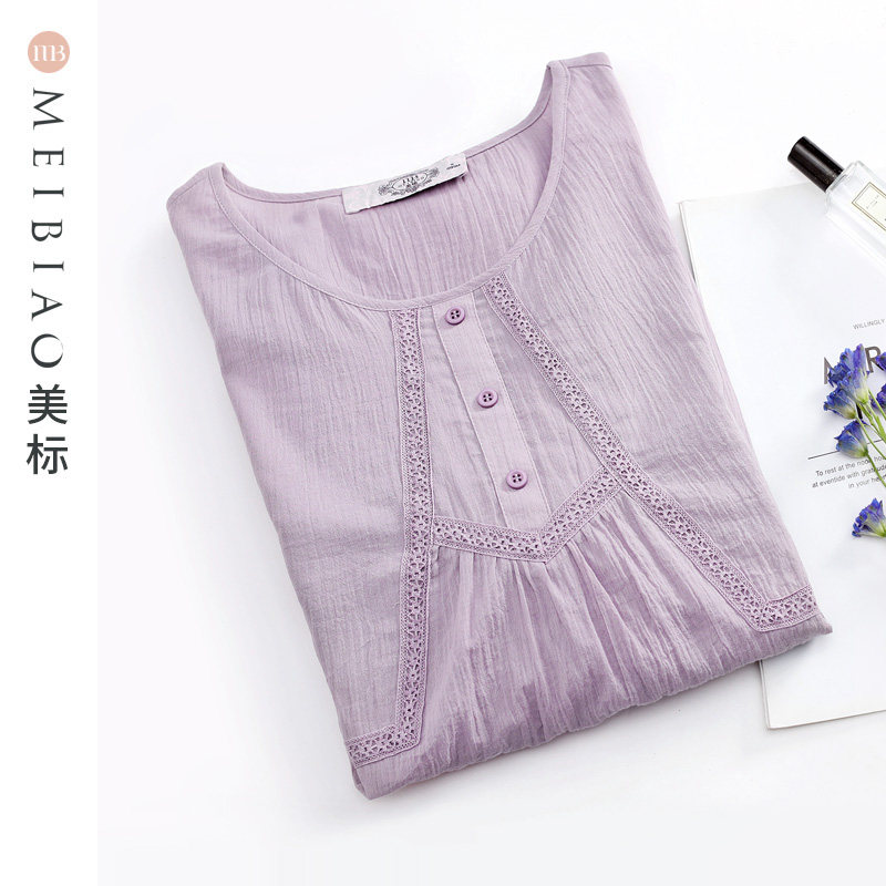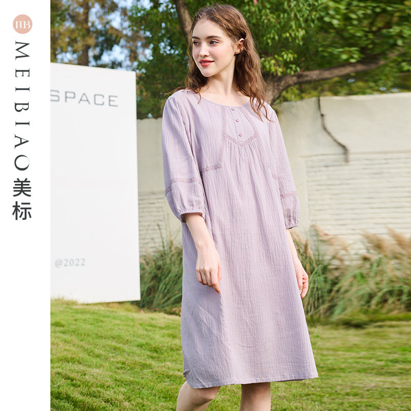 美标新款七分袖纯棉睡裙女春夏全棉质睡衣甜美公主风休闲家居服冬