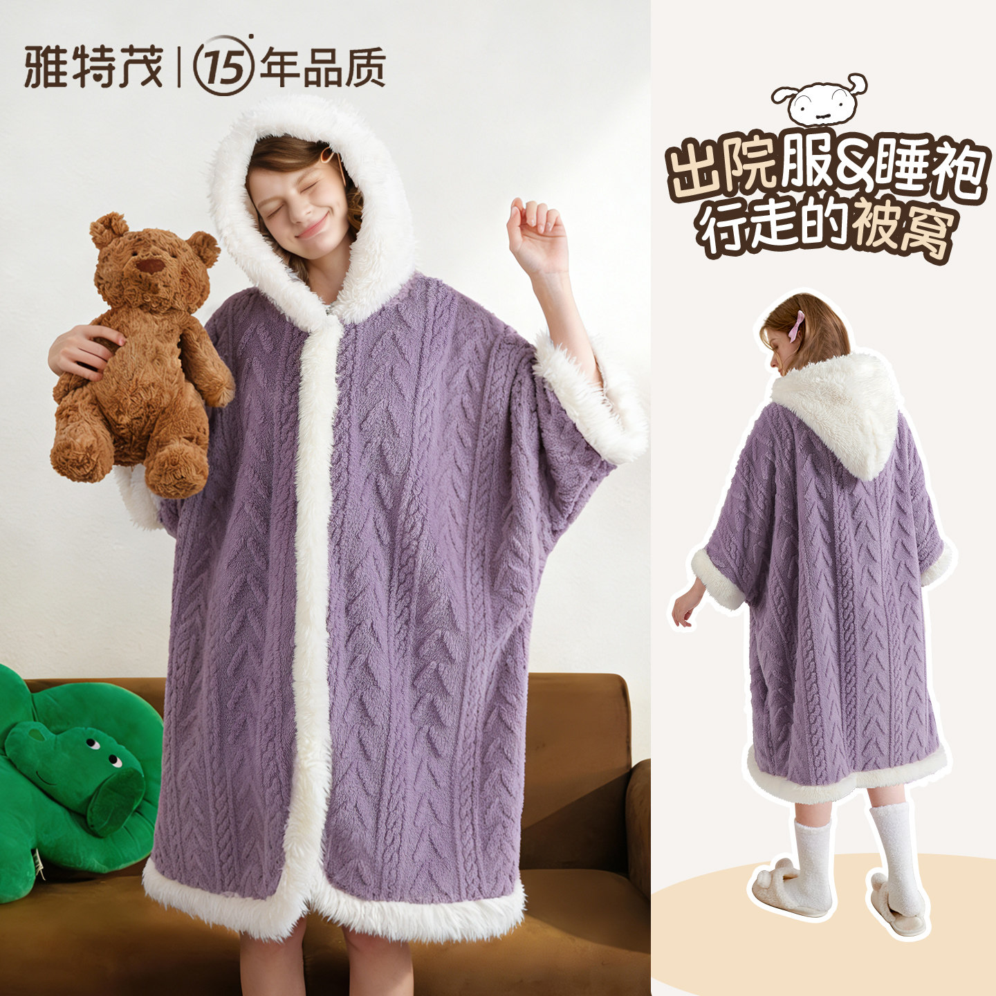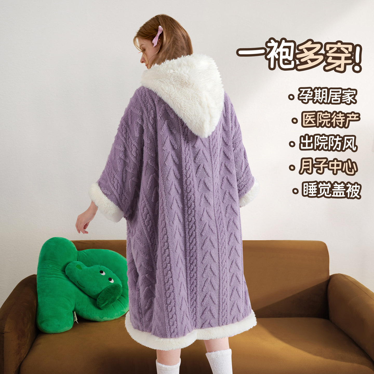 厚绒斗篷&出院服睡袍丨雅特茂加绒加厚孕妇产后连帽喂奶披肩女