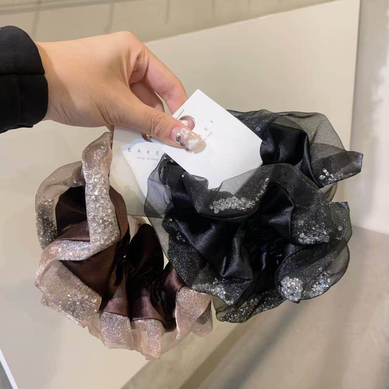 8.23韩国baket发饰网纱水钻拼接缎光大肠发圈高级感扎头绳皮筋