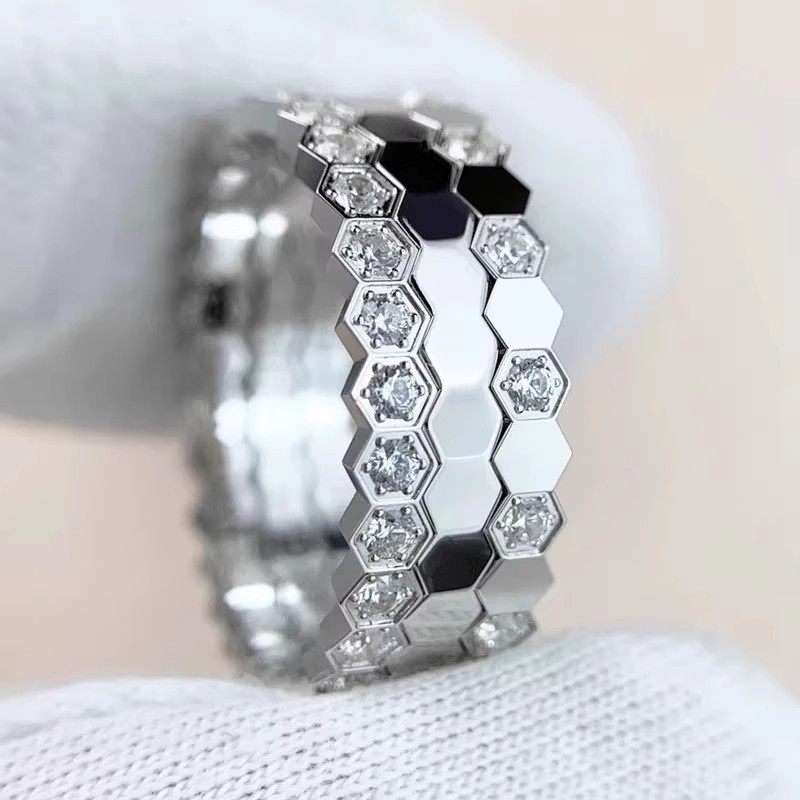 轻奢蜂巢戒指女满钻镀18k玫瑰金蜂窝叠戴半排钻高级感食指环
