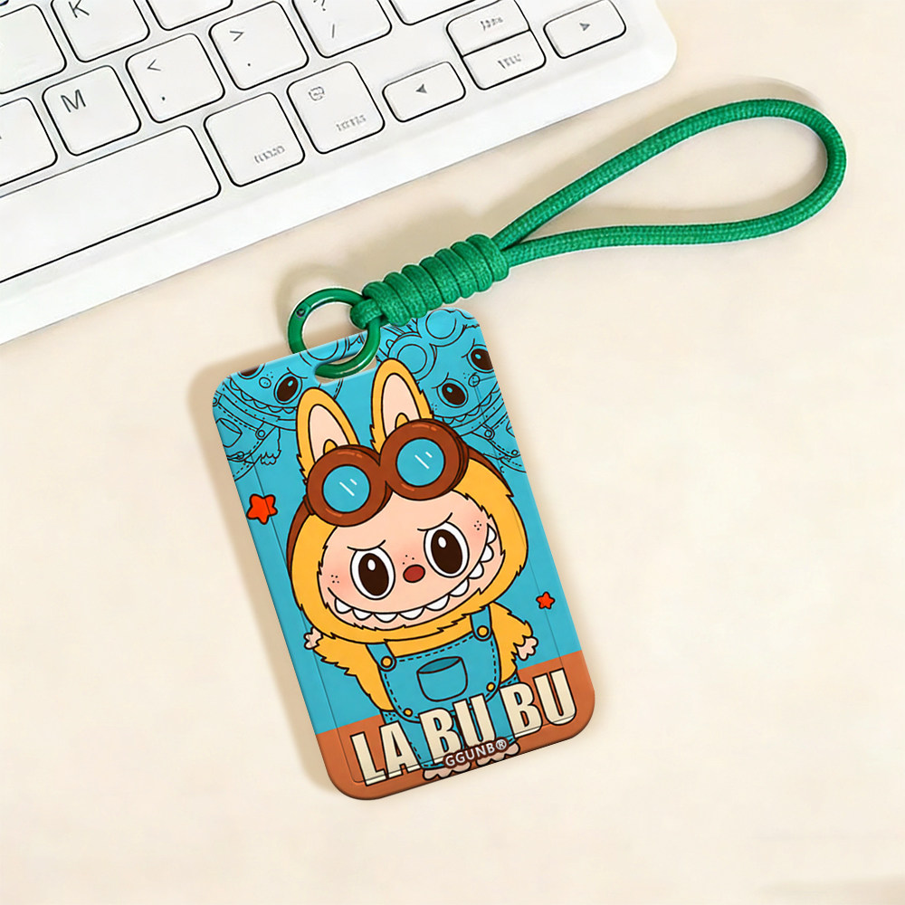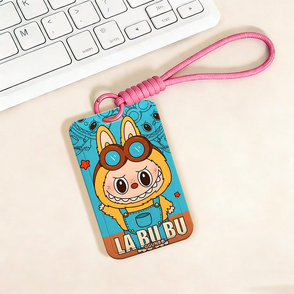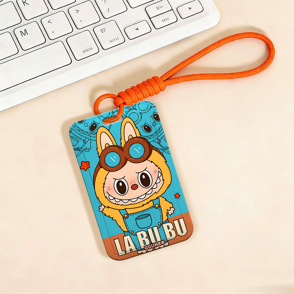 蓝背带裤眼镜黄卡通兔NFC感应卡套学生滑盖卡套饭卡地铁小区卡包学生卡公交卡身份证件门禁卡工作证件套