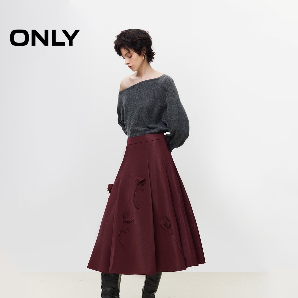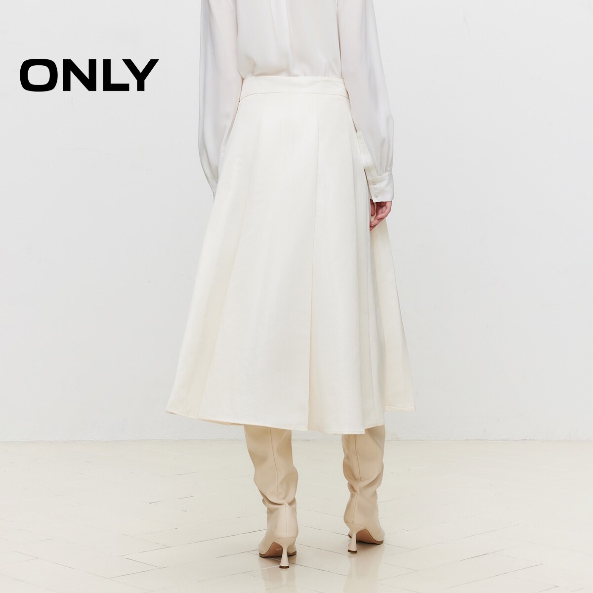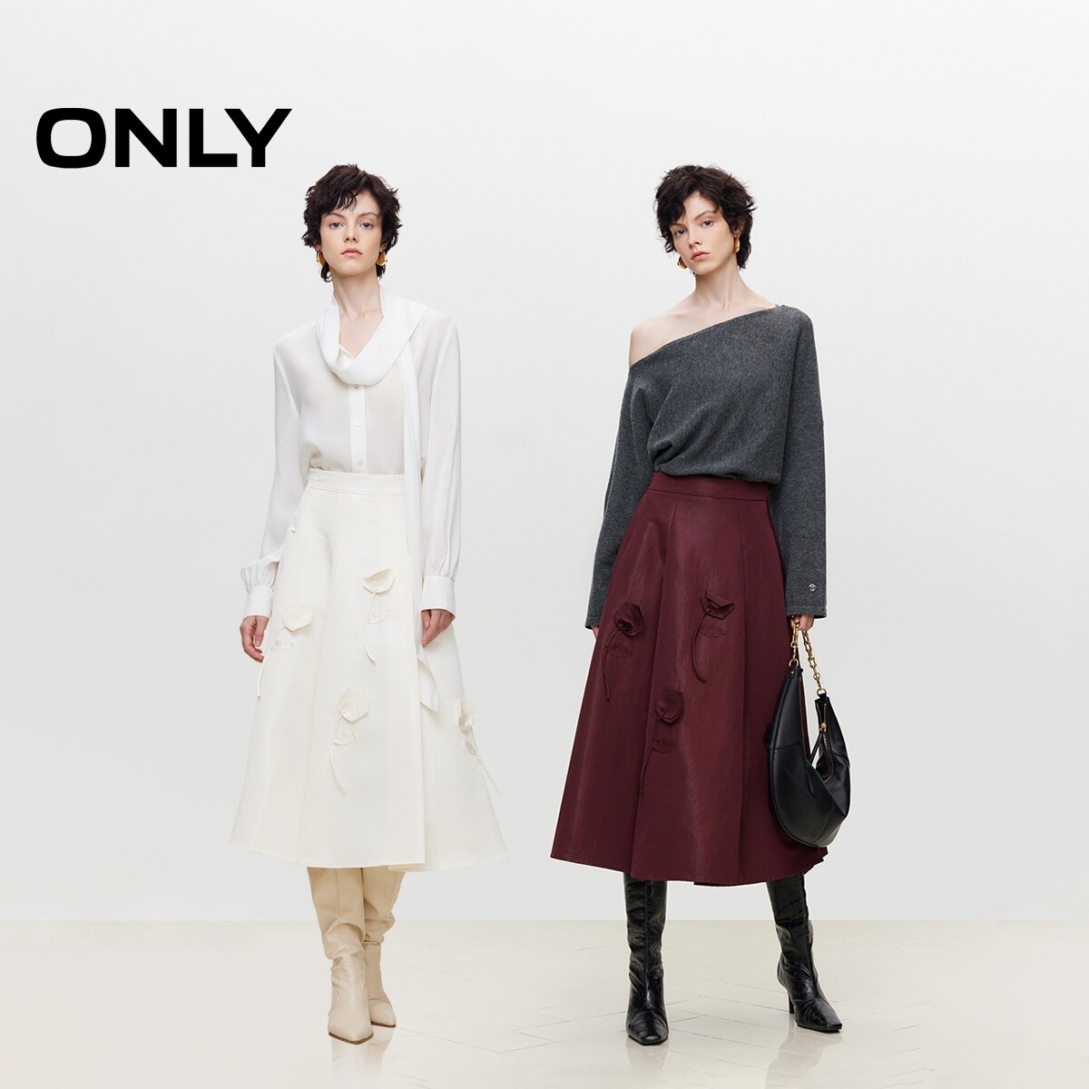 ONLY春季立体花朵设计感仙女裙高腰白色A字伞裙中长款半身裙女