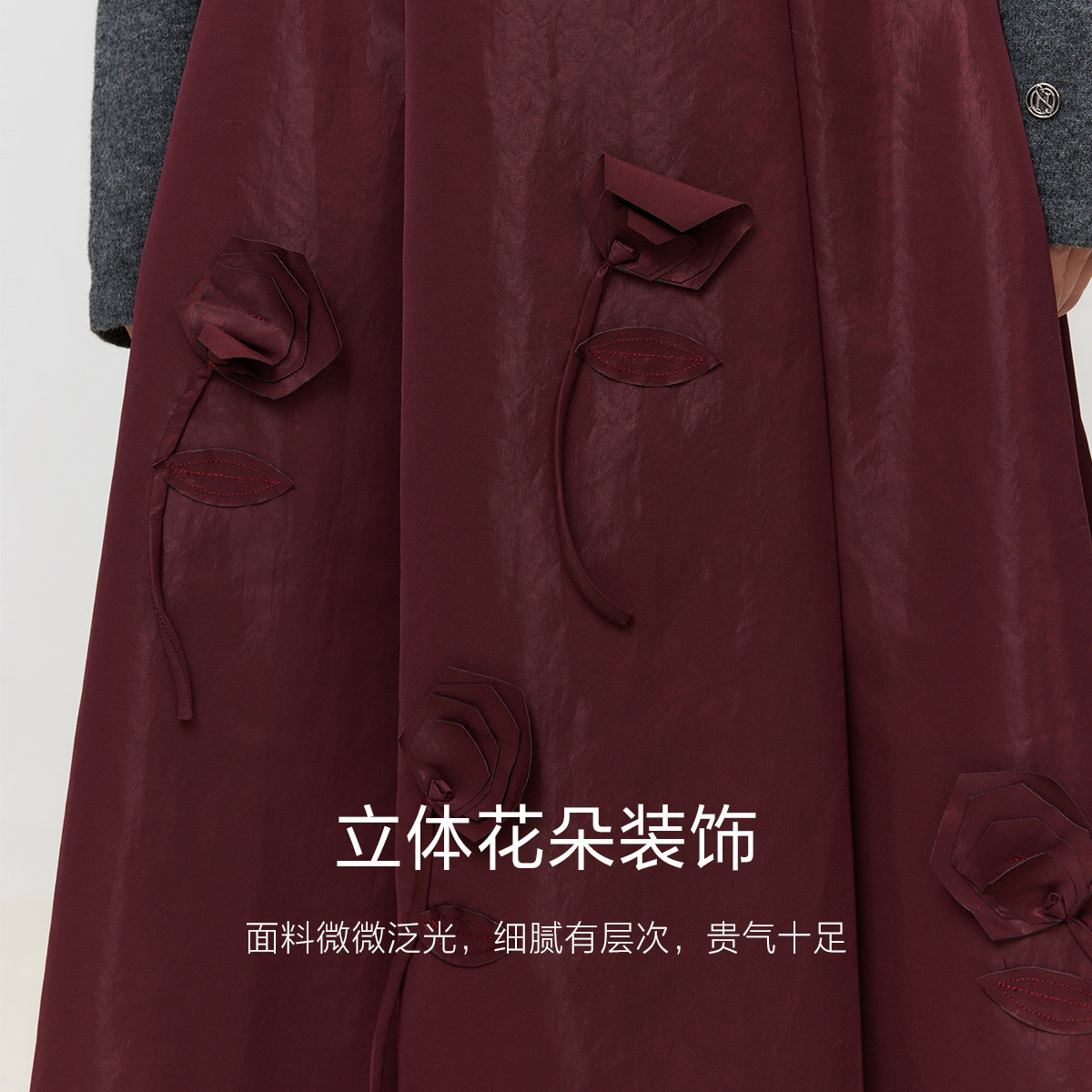 森马半身裙女夏季松紧腰肌理垂感分割A字裙宽松松弛感山本风长裙