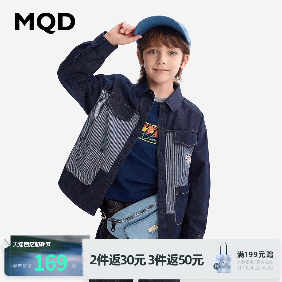 MQD童装男童翻领牛仔衬衫春秋款宝宝儿童牛仔拼接上衣衬衣外套