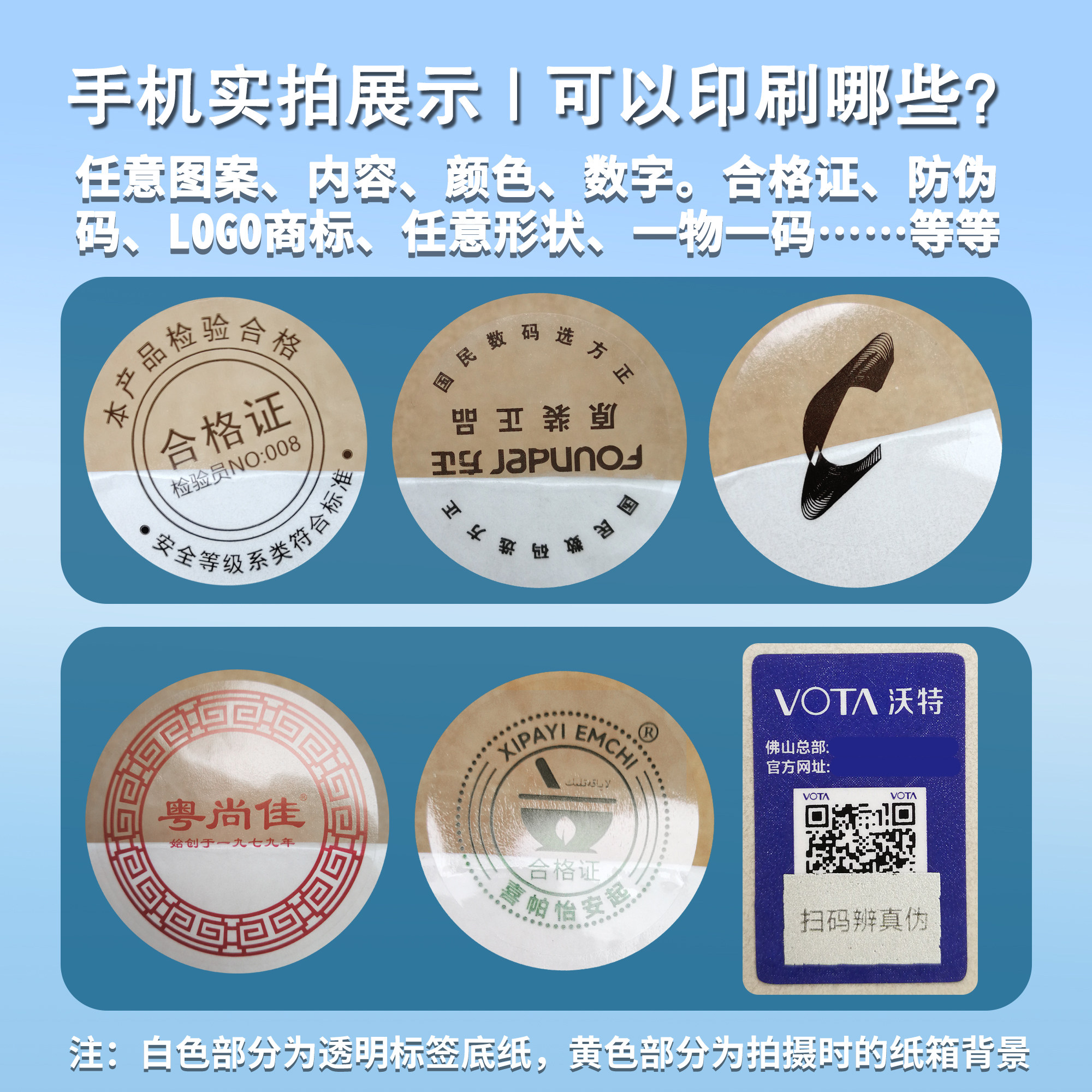 透明不干胶标签贴纸定制防伪标签印刷合格证二维码条形码logo商标空白透明封口贴彩色铜版长方形圆形贴纸定做