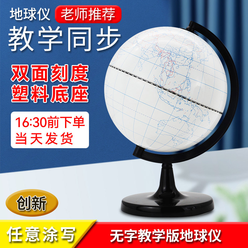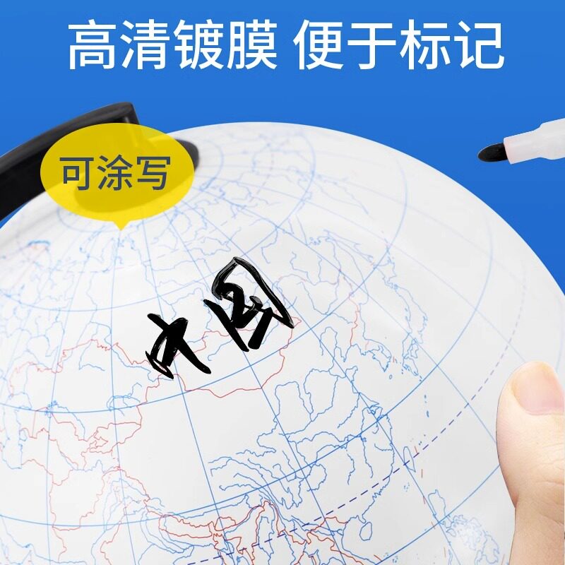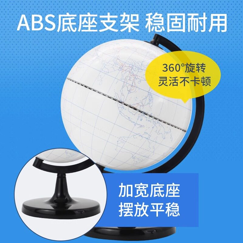 【老师推荐】大号20cm可擦写涂鸦地球仪diy手工绘画教学版地理学生用初中生涂写14.2无字空白填充地球仪