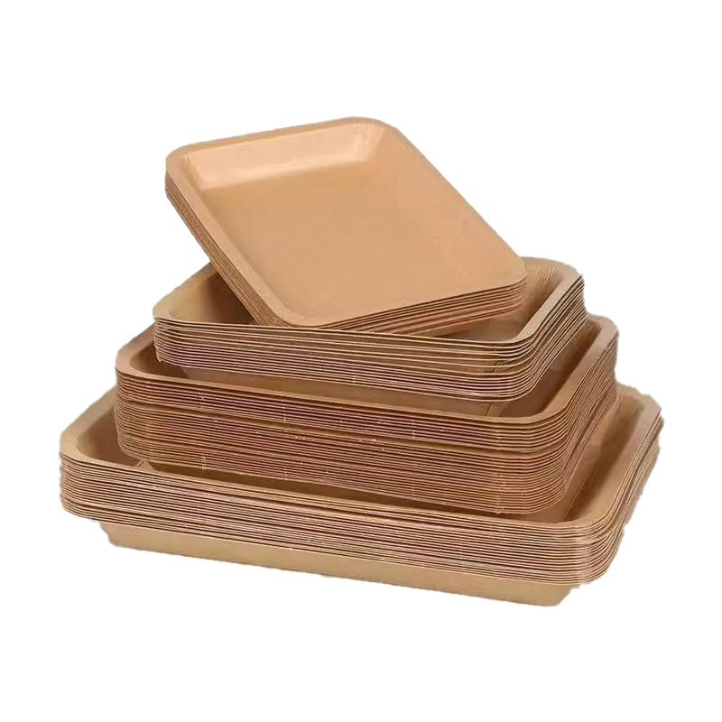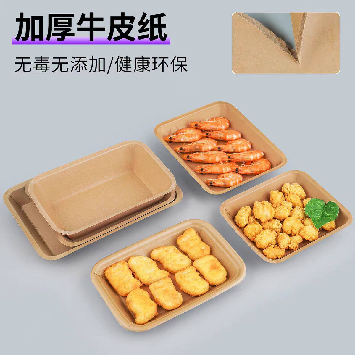 加厚一次性牛皮纸餐盘托盘烧烤水果盘子方形打包餐具餐盒碟子生日