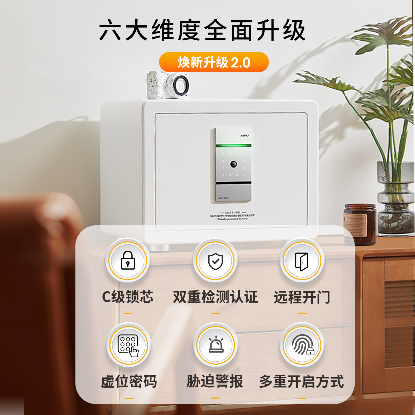 AIPU艾谱保险柜智能WiFi远程提示家用保险箱指纹密码锁办公保管防盗全钢夹万入墙床头衣柜小型家庭迷你隐藏式