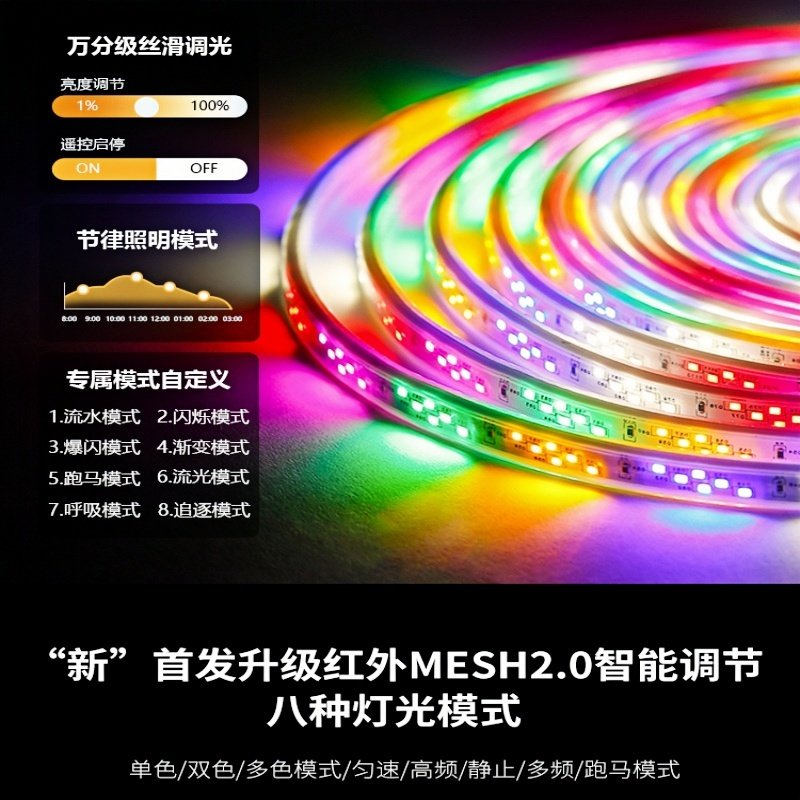 2026款七彩流光跑马灯彩灯流水户外防水灯带led灯条超亮招牌摆摊