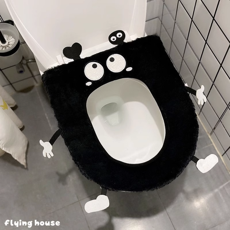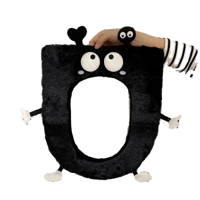 可爱卡通煤球马桶坐垫四季通用冬季坐便器保暖拉链垫子家用毛绒