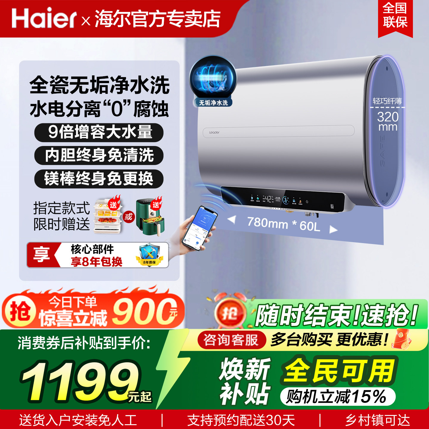 【以旧换新补贴】海尔智家统帅电热水器扁桶家用60升洗澡一级节能