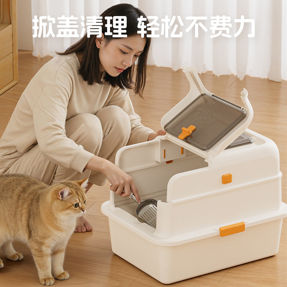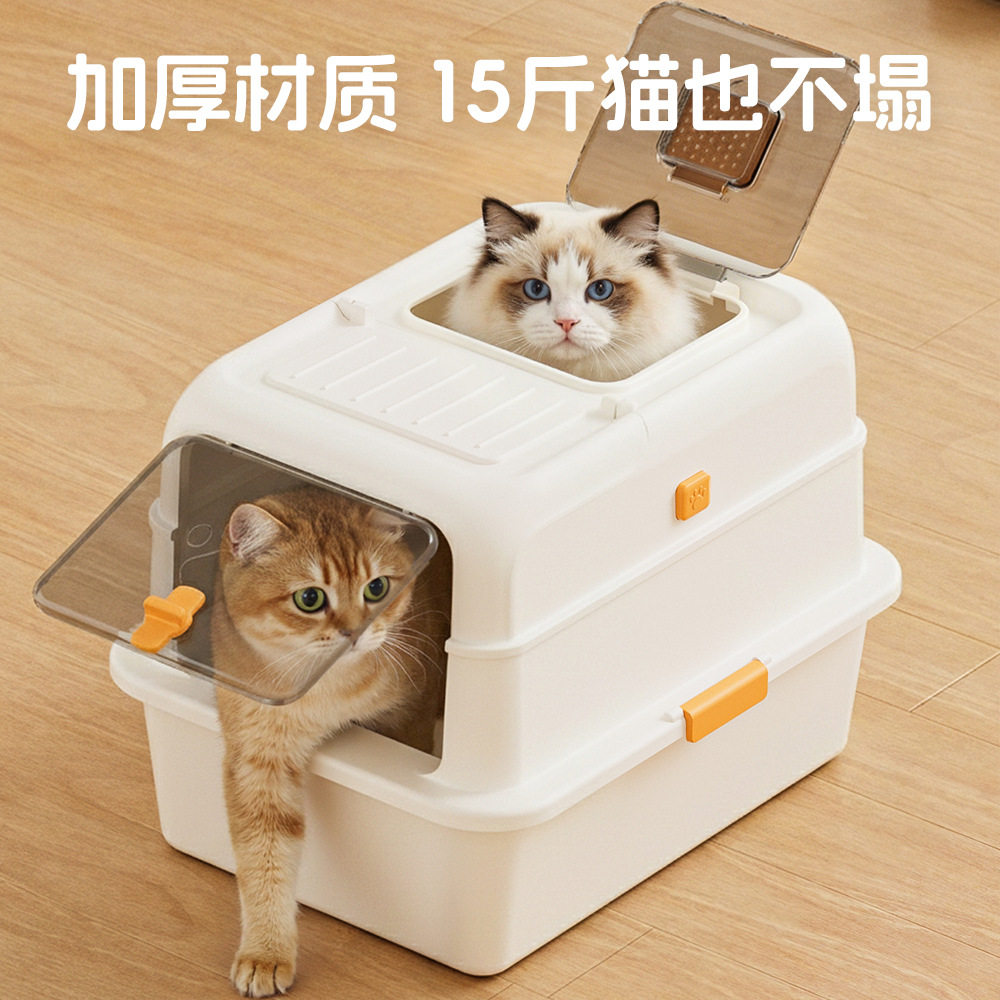 超大号不锈钢全封闭猫砂盆防外溅猫厕所猫咪屎盆宠物用品防臭方形