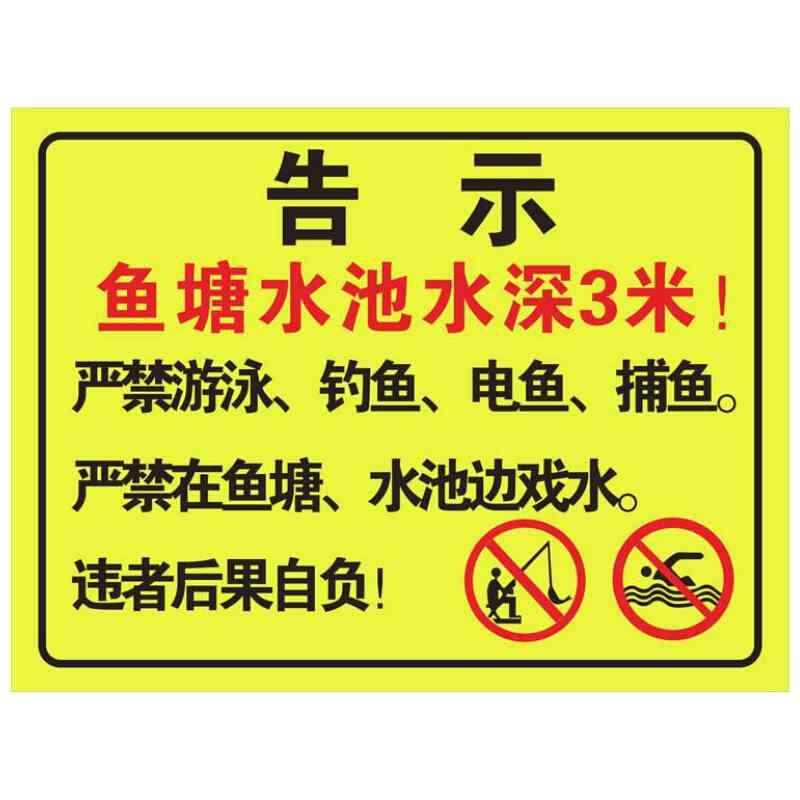 鱼塘水池水深3米告示牌 禁游泳钓鱼戏水危险标识牌 铝板告示标牌