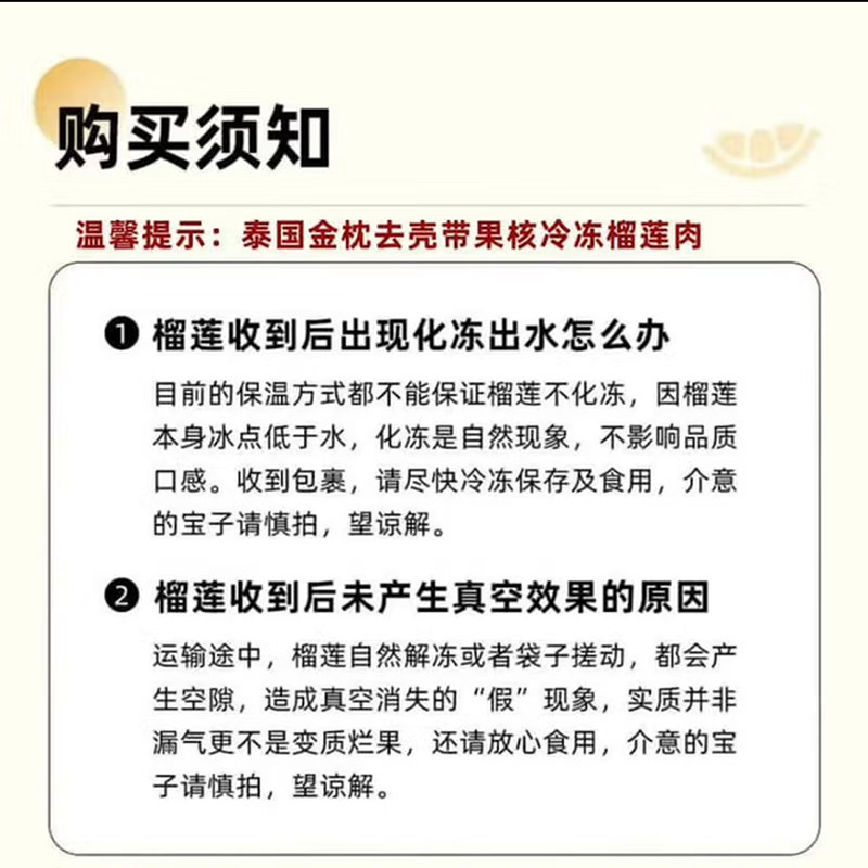 【蜜蜂心愿社】王上榴泰国进口金枕冷冻树熟榴莲果肉速冻水果软糯