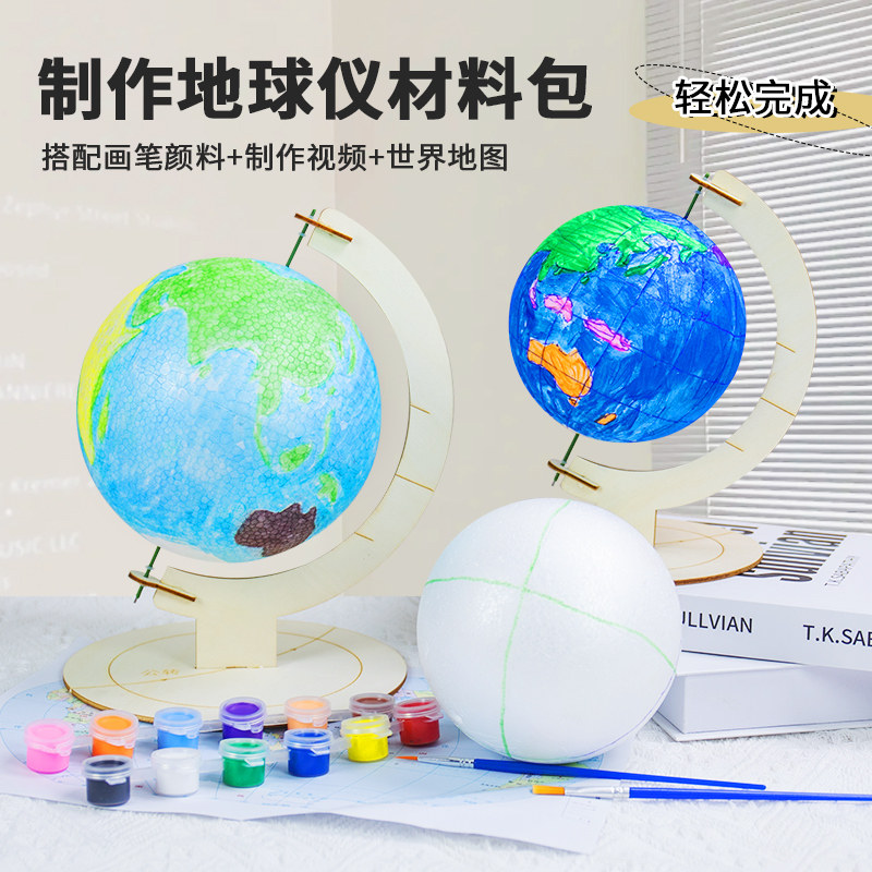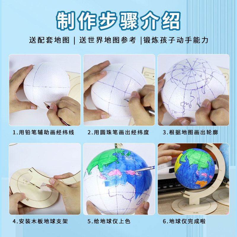初中生地球仪手工制作diy材料包泡沫球圆球自制地球模型初一地理