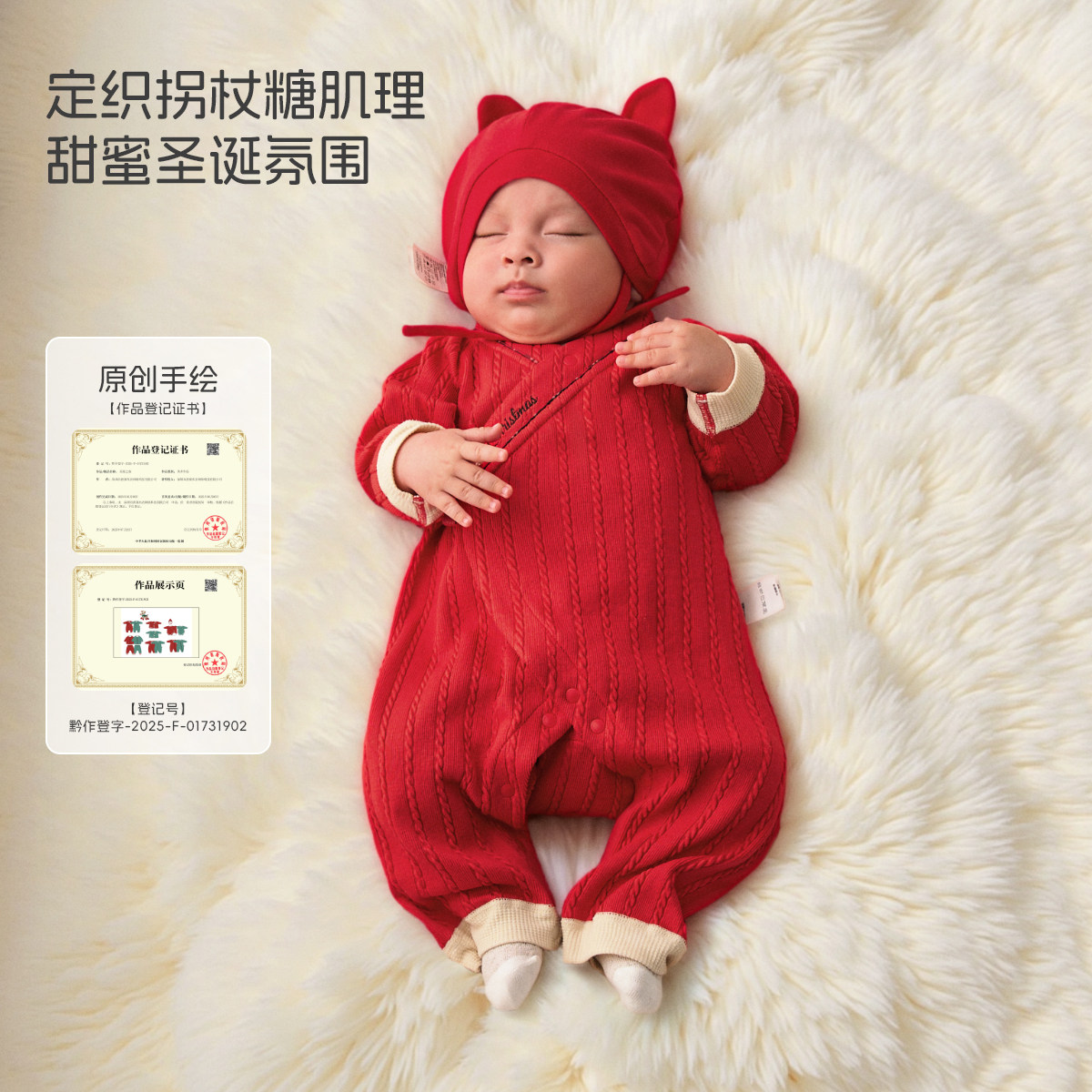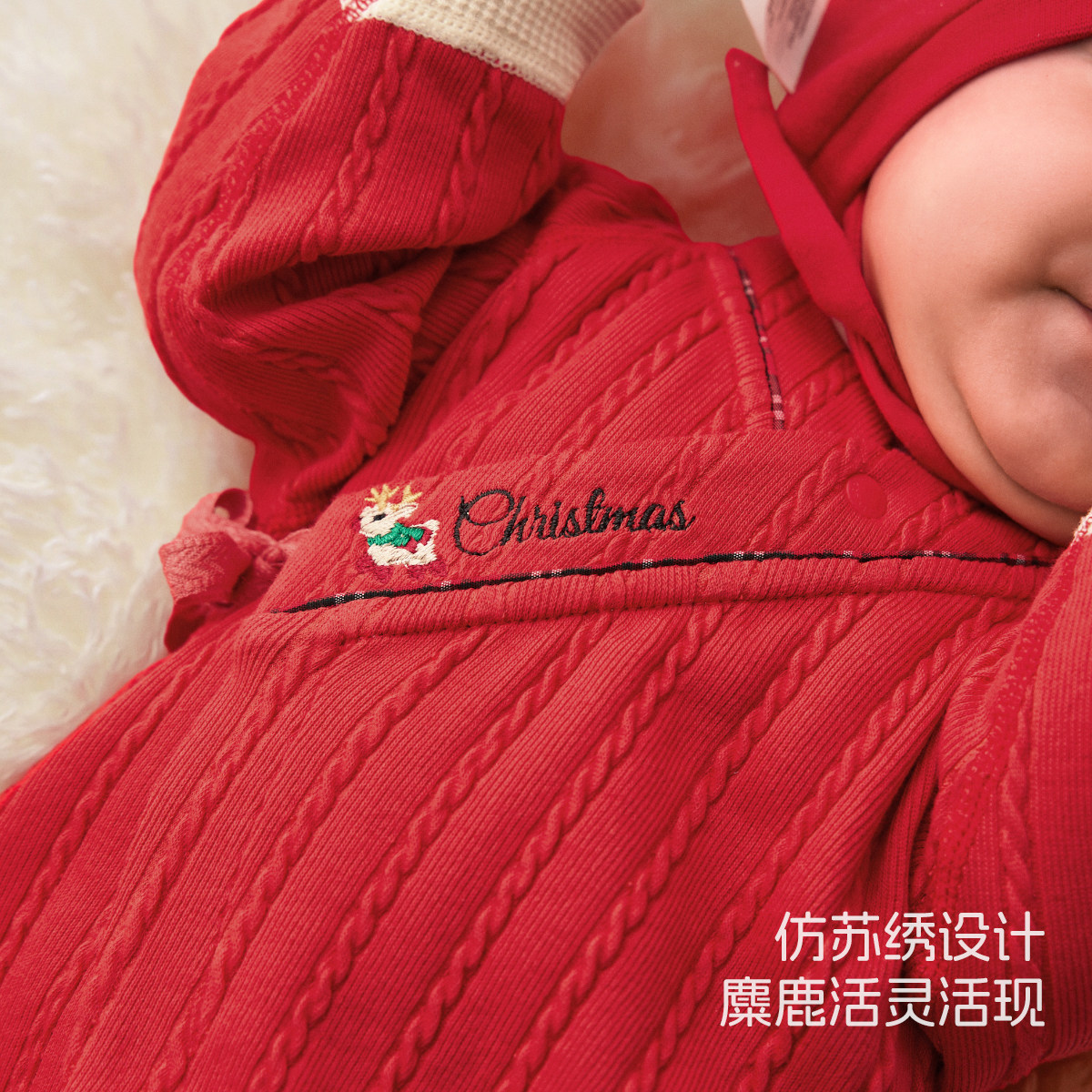 【圣诞之夜】aqpa爱帕宝宝儿童秋冬新品婴幼儿长袖提花绑带连体衣