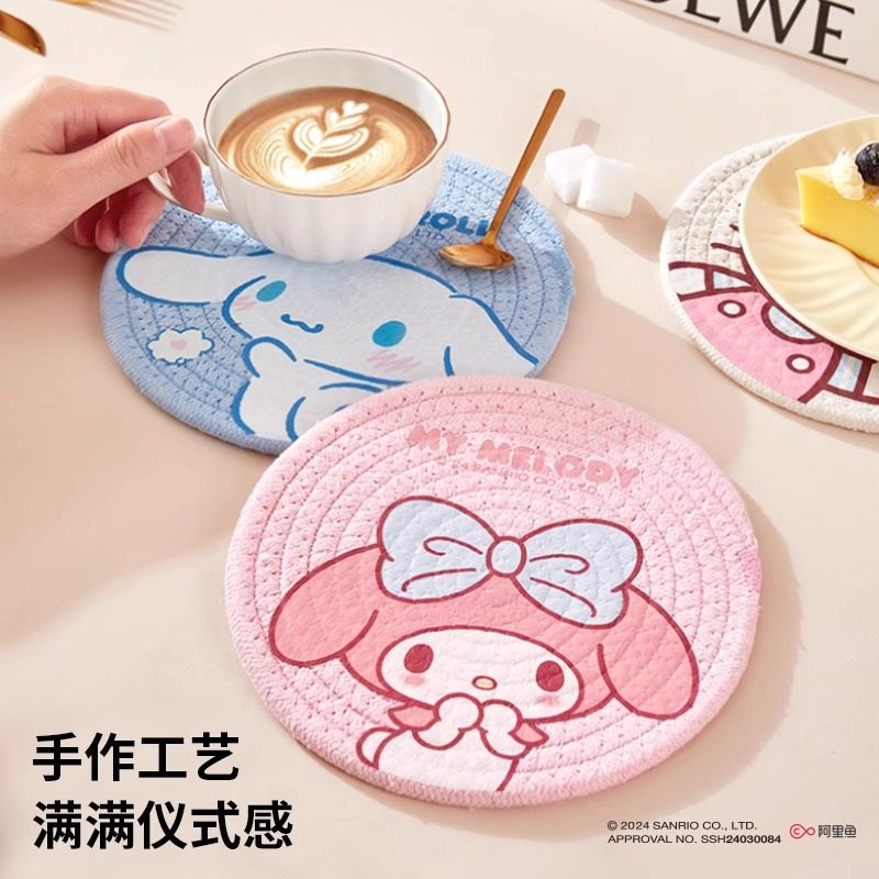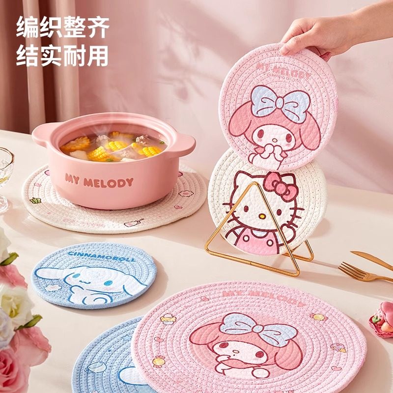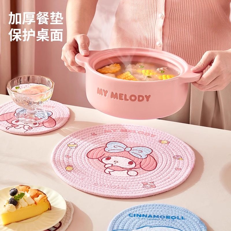三丽鸥防烫餐垫美乐蒂玉桂狗凯蒂猫编织可水洗反复使用加厚隔热垫